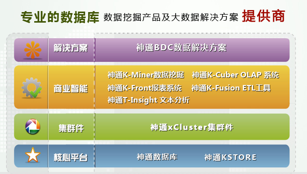 神舟通用公司主營(yíng)業(yè)務(wù)主要包括神通關(guān)系型通用數(shù)據(jù)庫(kù)、神通KStore海量數(shù)據(jù)管理系統(tǒng)、神通xCluster集群件、神通商業(yè)智能套件等系列產(chǎn)品研發(fā)和市場(chǎng)銷售;诋a(chǎn)品組合,可形成支持交易處理、MPP數(shù)據(jù)庫(kù)集群、數(shù)據(jù)分析與處理等解決方案。公司擁有40余名實(shí)戰(zhàn)經(jīng)驗(yàn)豐富的中高級(jí)數(shù)據(jù)庫(kù)技術(shù)服務(wù)人員,可提供數(shù)據(jù)庫(kù)系統(tǒng)調(diào)優(yōu)和運(yùn)維服務(wù)。公司客戶主要覆蓋政府、電信、能源、交通、網(wǎng)安、國(guó)防和軍工等領(lǐng)域,率先實(shí)現(xiàn)國(guó)產(chǎn)數(shù)據(jù)庫(kù)在電信行業(yè)的大規(guī)模商用。