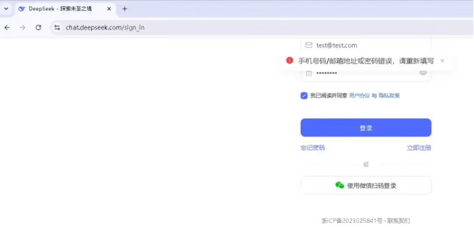 在偽造的登錄頁面,即便用戶輸入正確的用戶名和密碼,頁面也會提示用戶名或密碼錯誤。用戶名和密碼信息將會被發(fā)送至 https://chat.deepseek.com/ api / v0 / users / login 接口中,并且該登錄頁面會不斷獲取當(dāng)前瀏覽器版本等信息。
