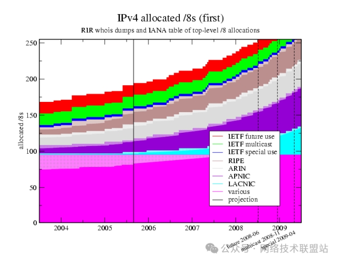 2011年IANA已將最后一塊IPv4地址空間分配完畢,各大區(qū)域互聯(lián)網(wǎng)注冊(cè)機(jī)構(gòu)(RIR)隨后進(jìn)入“枯竭模式”。